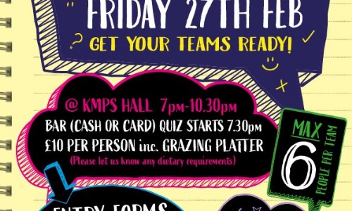 Up to 6 people per team. Entry £10 per person including snacks. 7:00pm til 10:30pm - Bar - Over 18's only. This is always a popular event so please get your entry in early.